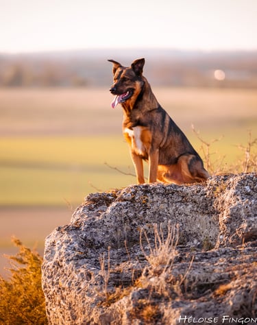 "Nous avons réalisé une séance photo avec Héloise pour mon chien Sultan. Les photos sont très jolies et nous avons passé un super moment dans un lieu incroyable au coucher du soleil. Très bonne expérience !"